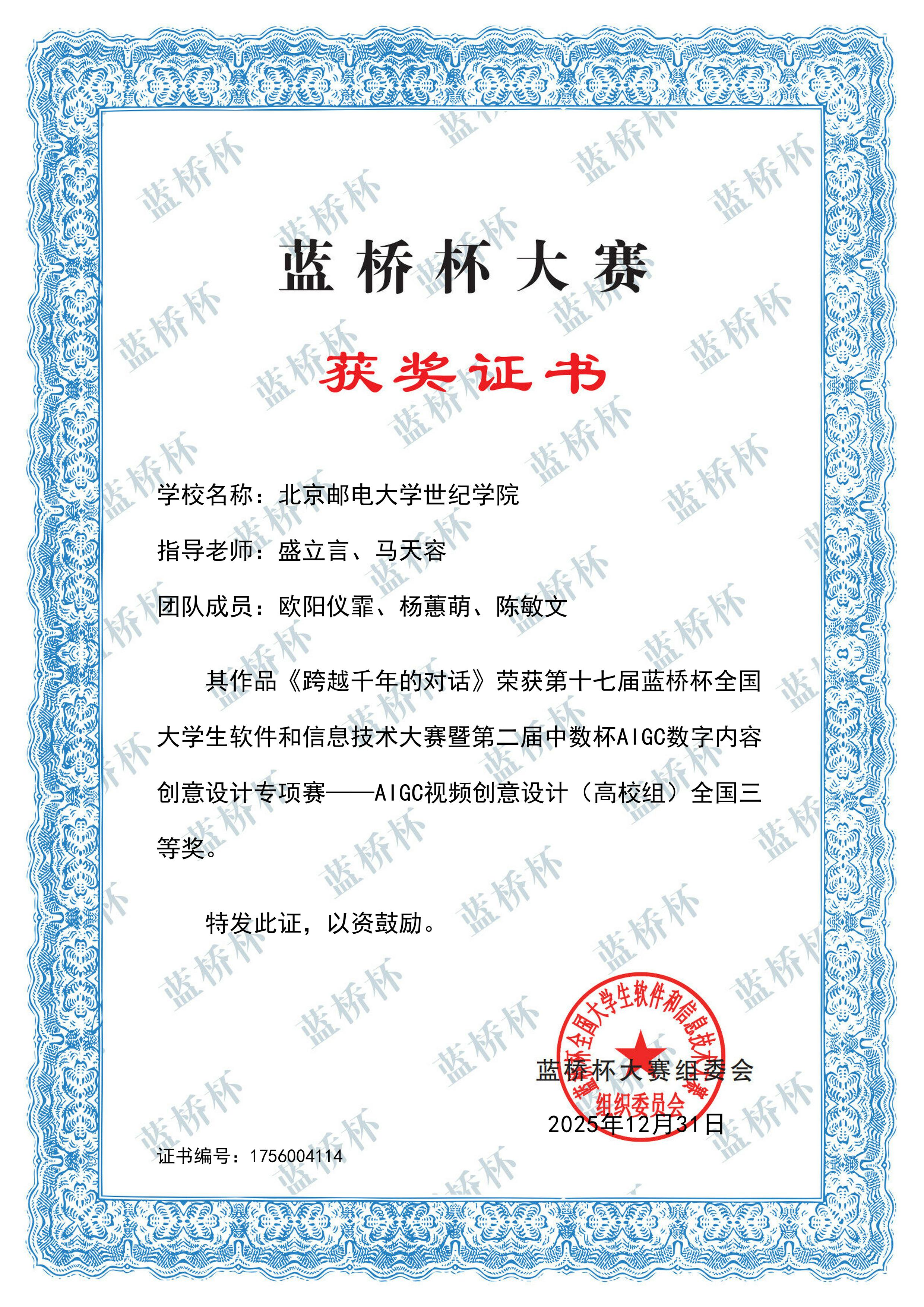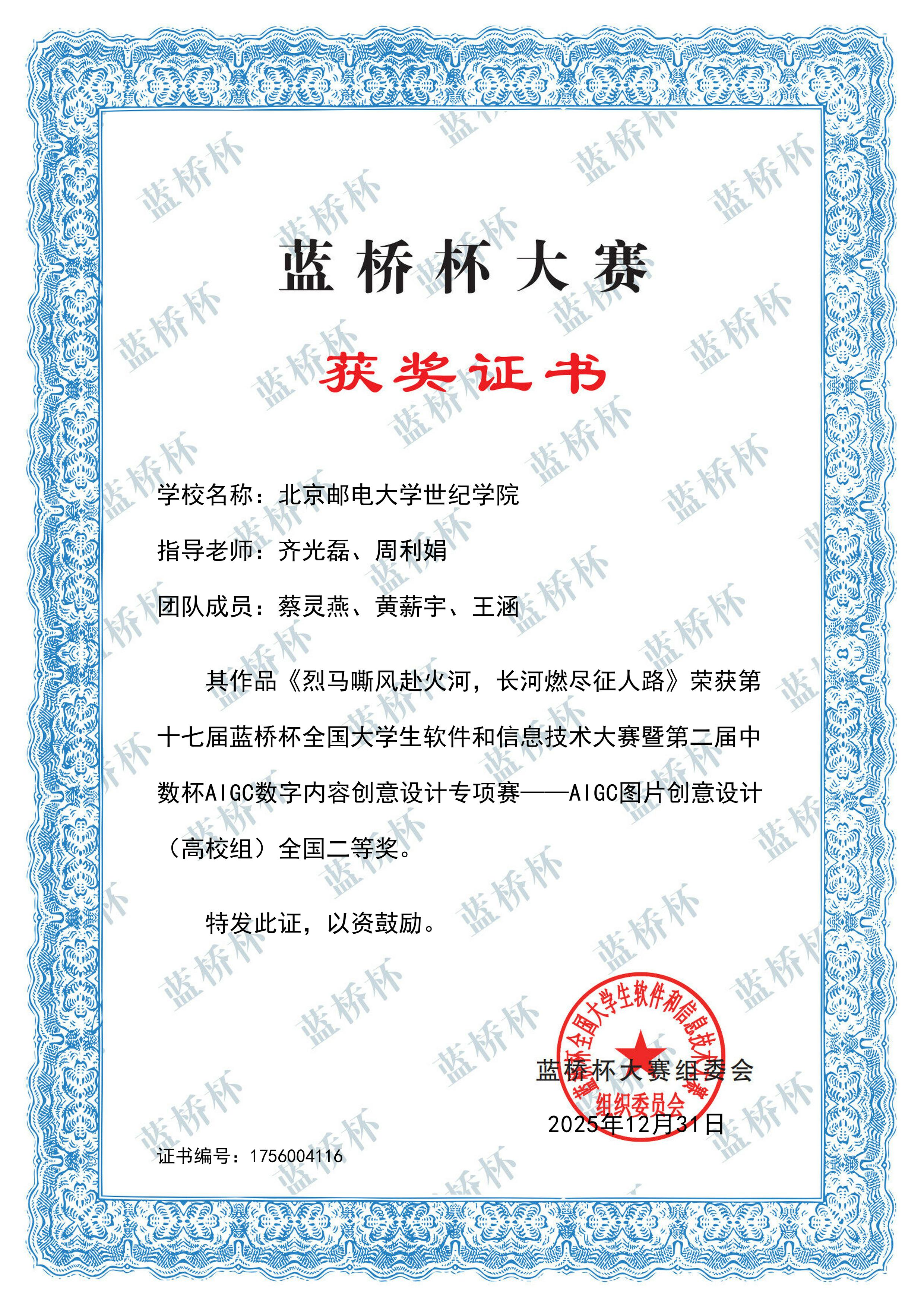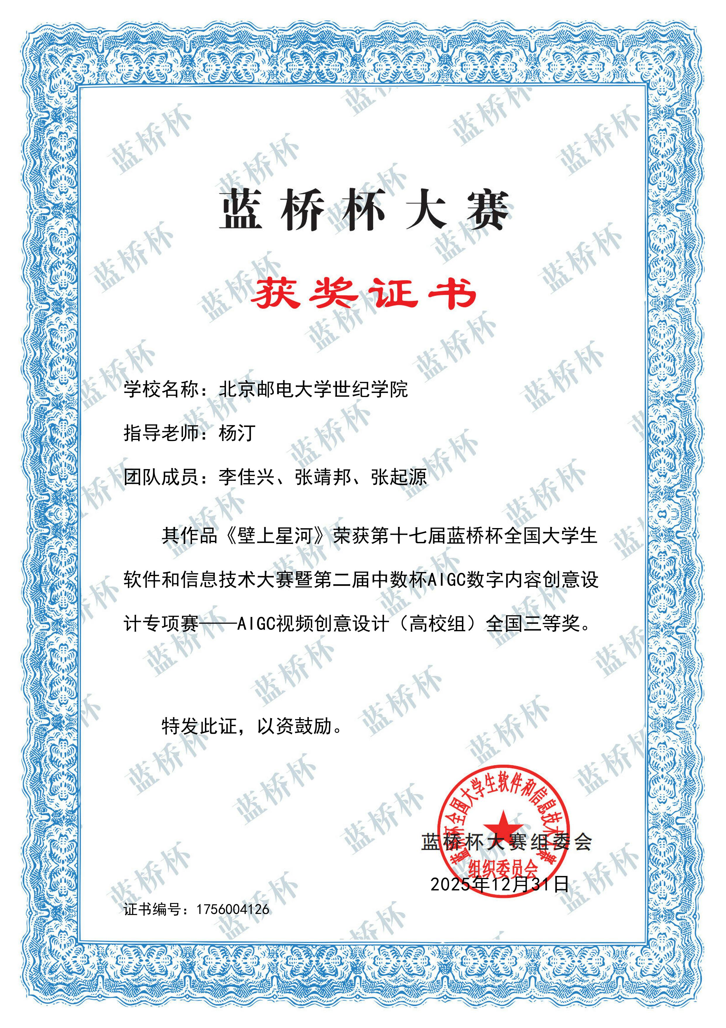 1月4日,第十七届蓝桥杯大赛专项赛暨第二届中数杯AIGC数字内容创意设计大赛全国赛结果揭晓,学院学子凭借扎实的专业功底与创新的设计思维,在赛事中表现亮眼,共斩获全国一等奖2项、全国二等奖3项、全国三等奖7项,总计12项全国奖项。其中,人工智能创新工作室贡献了全部一等奖、二等奖及5项三等奖,成为本次赛事获奖的核心力量。